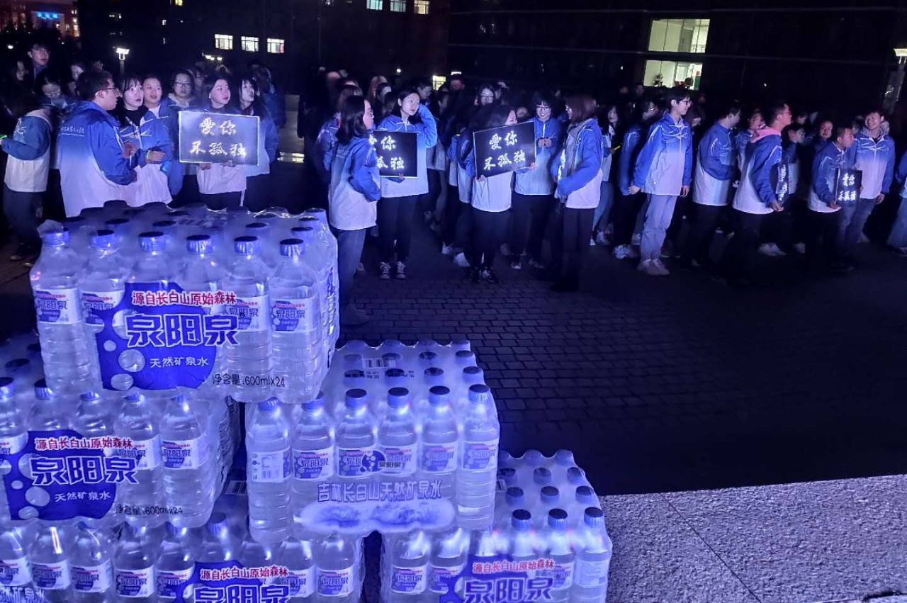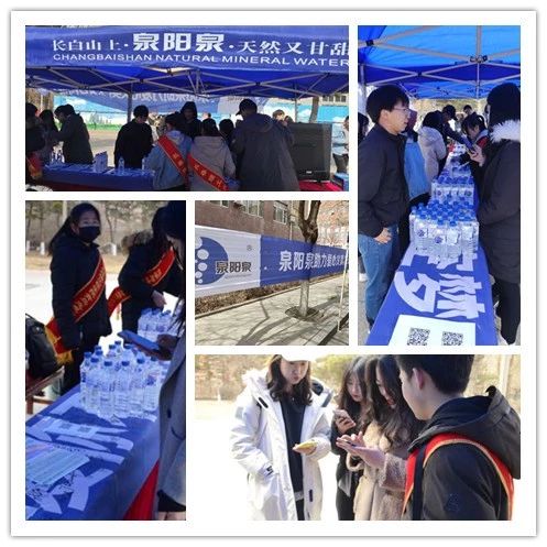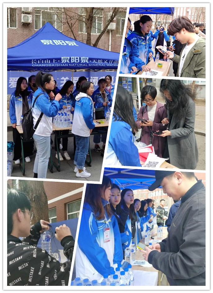 四月的長春雖已步入了春天,但天氣依舊寒冷,盡管志愿者們凍得瑟瑟發(fā)抖,但每個(gè)成員都積極地參加到活動(dòng)中,將源自長白山的泉陽泉天然礦泉水送至每個(gè)同學(xué)手中。