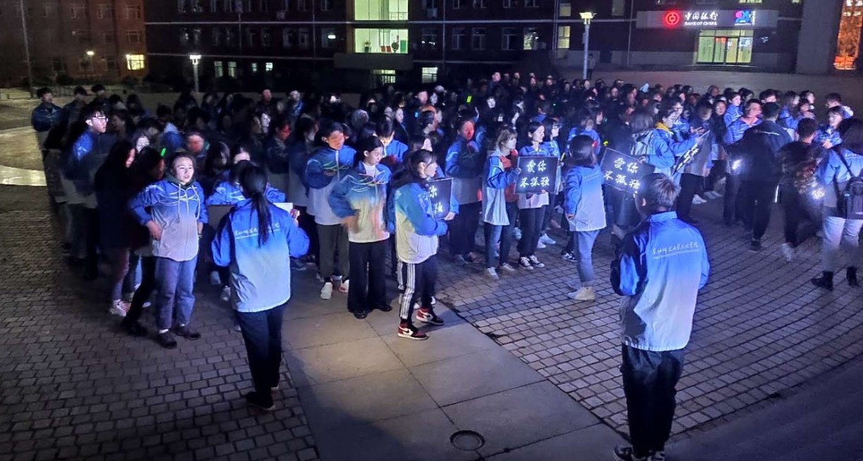 當(dāng)夜幕降臨,同學(xué)們齊聚廣場(chǎng),手持熒光棒,舉行星空夜跑活動(dòng),整個(gè)校園在燈光的映襯下閃閃發(fā)光,同學(xué)們的愛心在為自己發(fā)聲,也在為每個(gè)自閉癥的兒童發(fā)光發(fā)熱!