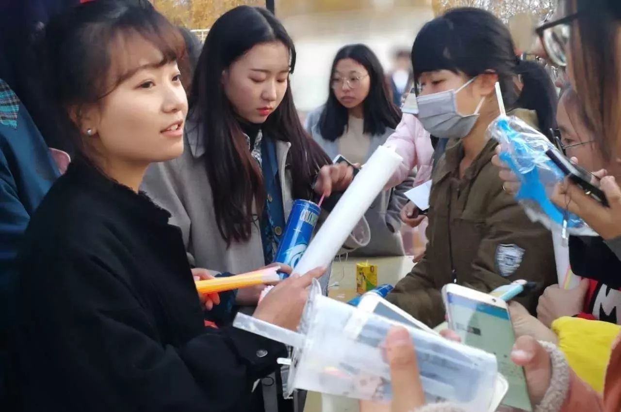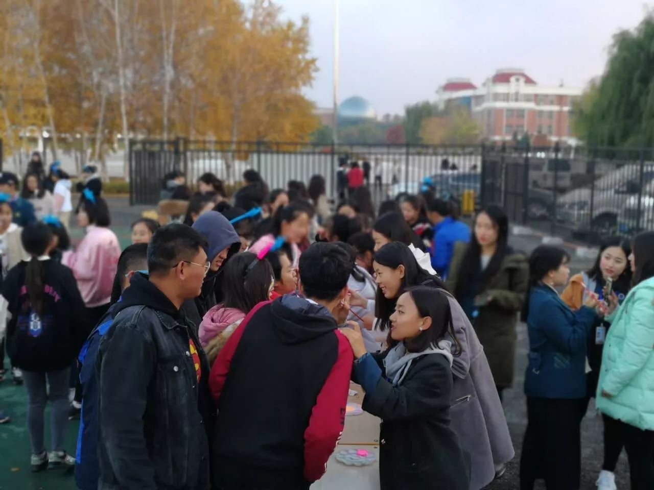 秋風(fēng)蕭瑟中,同學(xué)們?cè)缭绲牡竭_(dá)了活動(dòng)現(xiàn)場(chǎng),簽名墻合影留念。